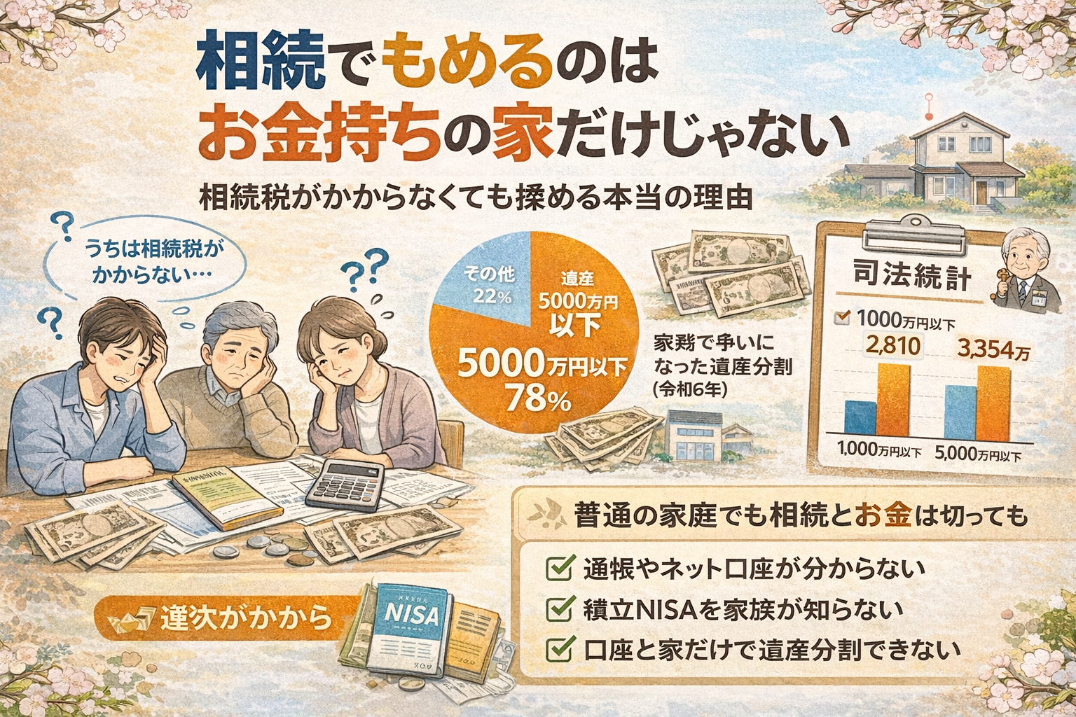 相続税がかかる/かからないに関係なく、「不動産」「預貯金」「投資(NISA)」が絡むと、家族の意思決定は複雑になります。