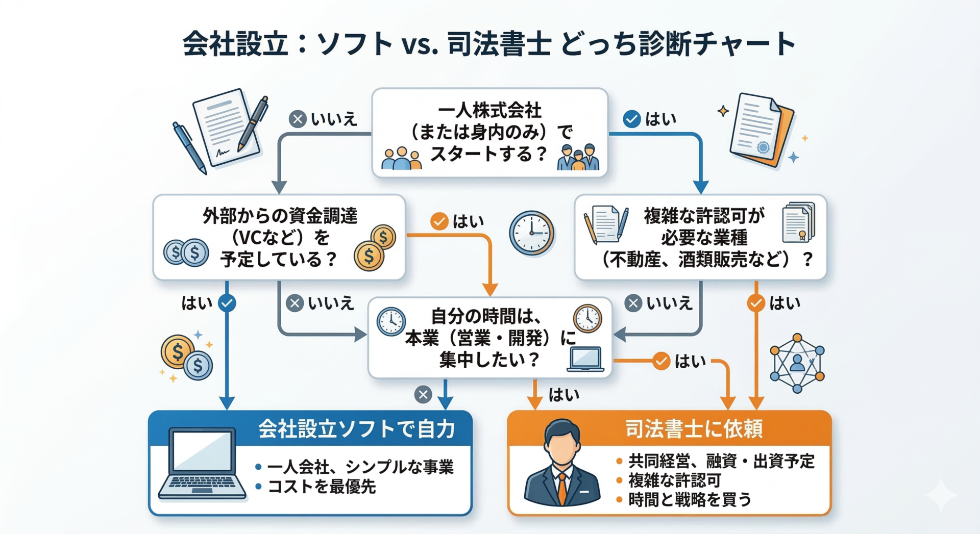 2026年現在、設立ソフトの精度は極めて高く、以下のようなケースではソフトの利用が最も合理的です。