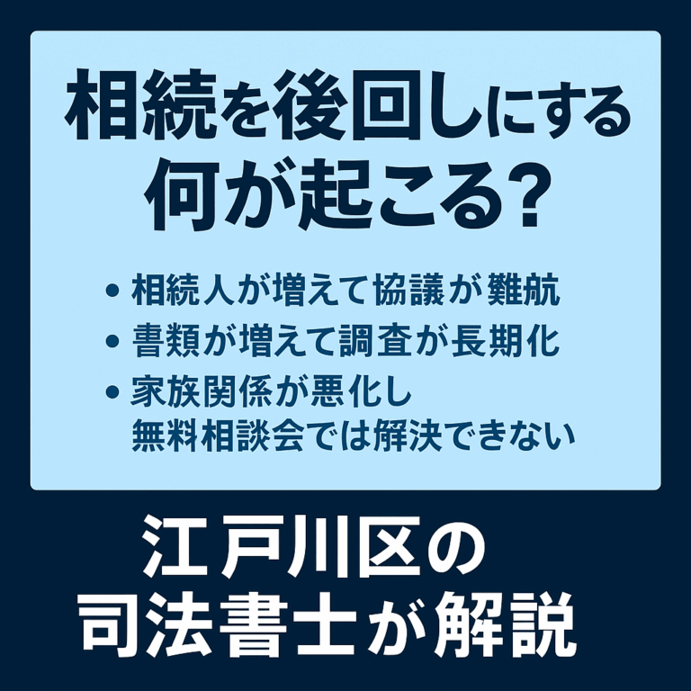 相続を後回しにすると何が起こる?江戸川区の司法書士が解説